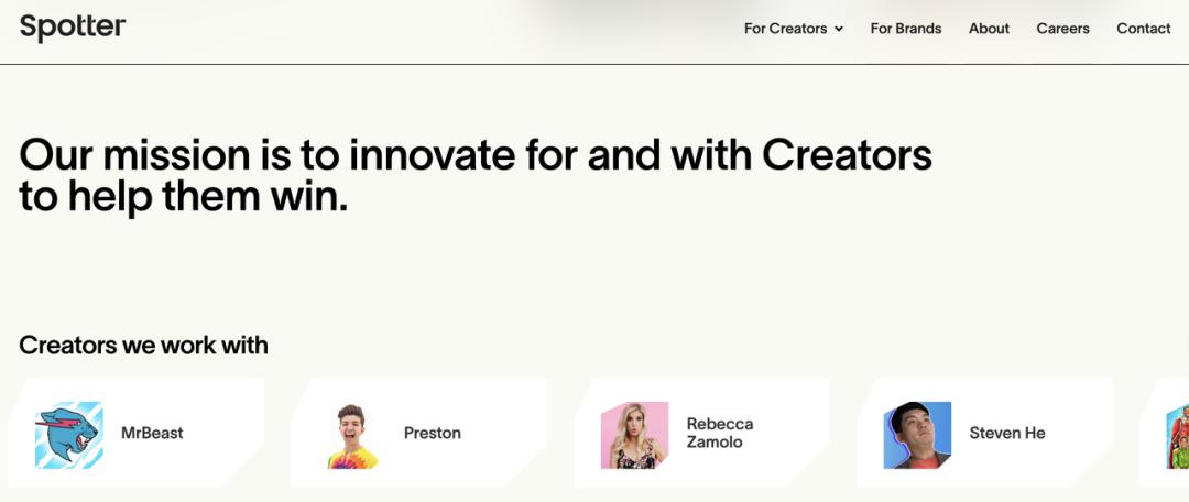 Spotter官网首页的宣言,以及Spotter已经合作的红人