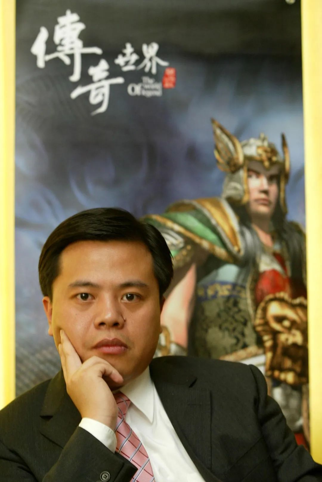 陈天桥与《传奇世界》海报合影
