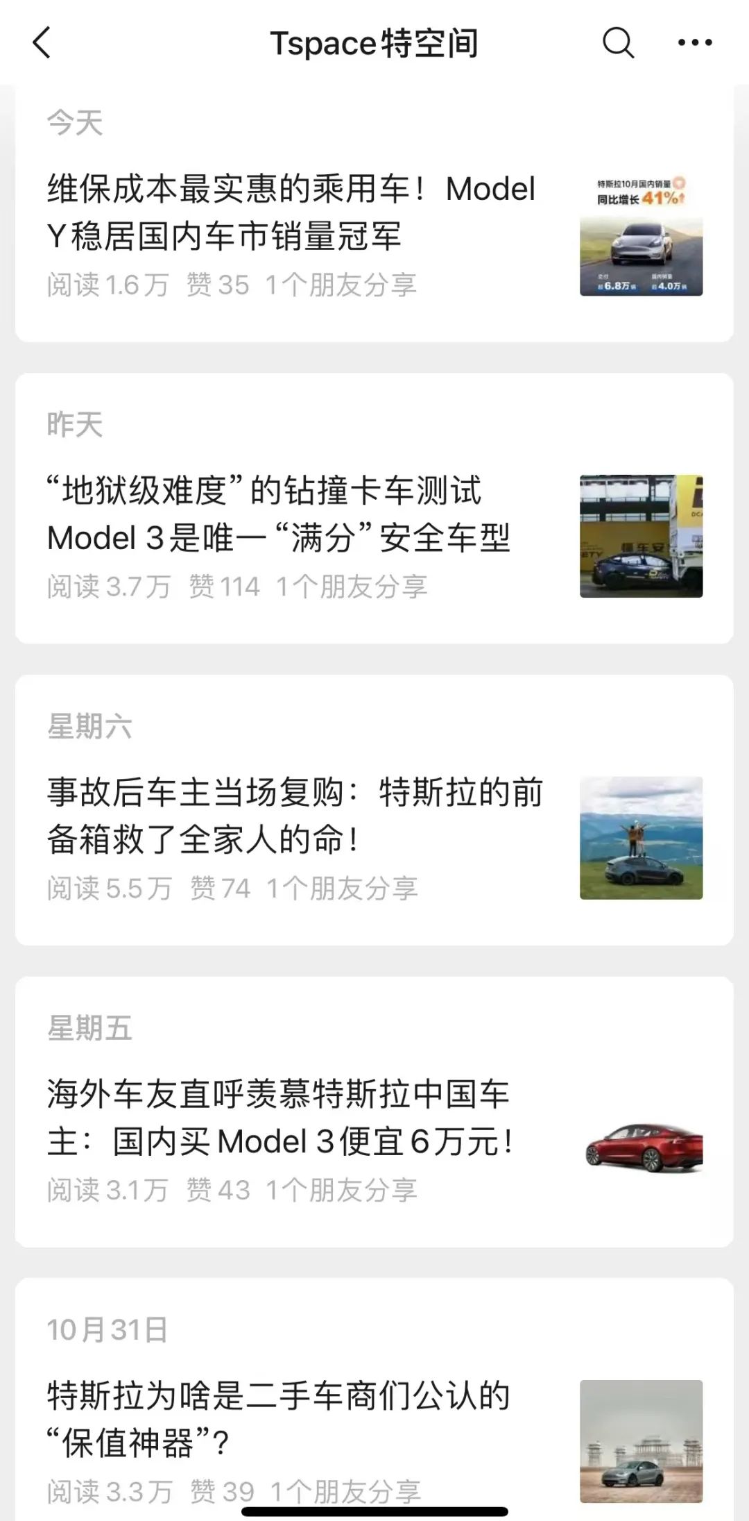 点开特斯拉车主重点关注的一个公众号,里面很少有花里胡哨的内容,更多是聚焦车主的用车生活,朴实无华地突出一个"省"。