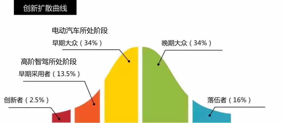 如果用创新扩散曲线来解释,从社会范围看,纯电车型已经是主流购车人群的需求。而智能化尤其是对高阶智驾的追求,还没有跨越鸿沟,被市场广泛接纳。
