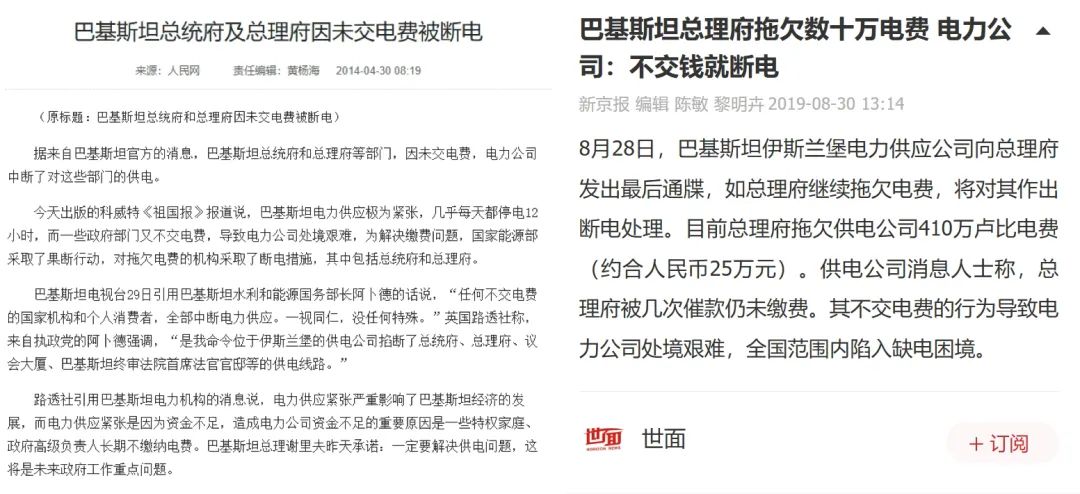 在用户端,高昂的电价以及电网公司维护不善,使得居民拖欠电费和偷电现象猖獗。亚洲开发银行的报告显示,2014 至 2015 财年,巴基斯坦电费的收缴率仅为89%,远低于国家电力监管局设定的100%目标。不仅是普通居民,甚至连政府机构也存在拖欠电费的情况。2014 年和 2019 年,巴基斯坦的议会、总理府、总统府都曾因拖欠巨额电费,被电网公司威胁断电。