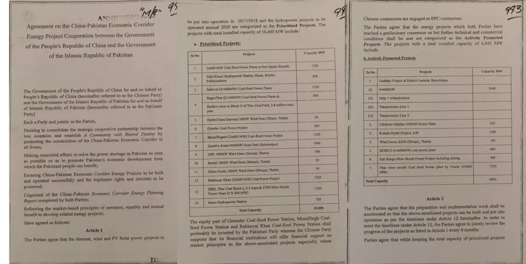 中华人民共和国政府和巴基斯坦伊斯兰共和国政府. 关于中巴经济走廊能源项目合作的协议. 2015.