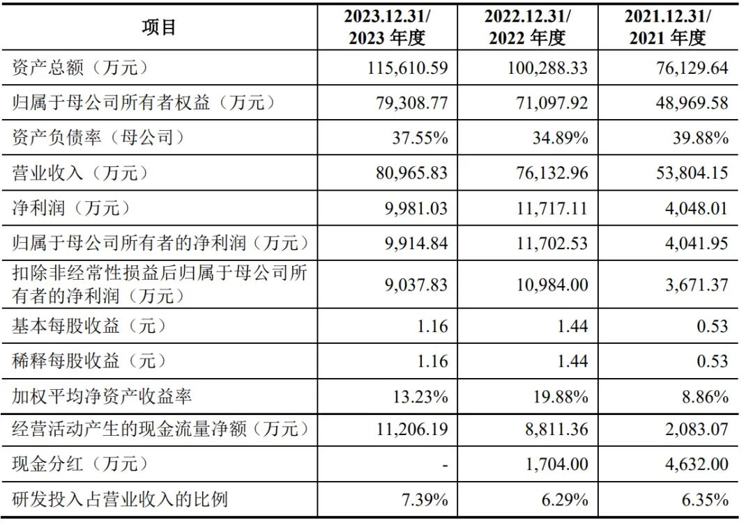 招股书显示,龙创设计2021年、2022年、2023年营收分别为5.38亿、7.61亿、8.1亿元;净利分别为4047.78万元、1.17亿、9981万元;扣非后净利分别为3671万元、1.1亿元、9038万元。