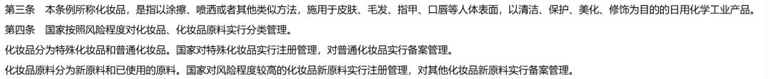 其中,第十一条内容显示,具有防腐、防晒、着色、染发、祛斑美白功能的化妆品新原料,经国务院药品监督管理部门注册后方可使用。