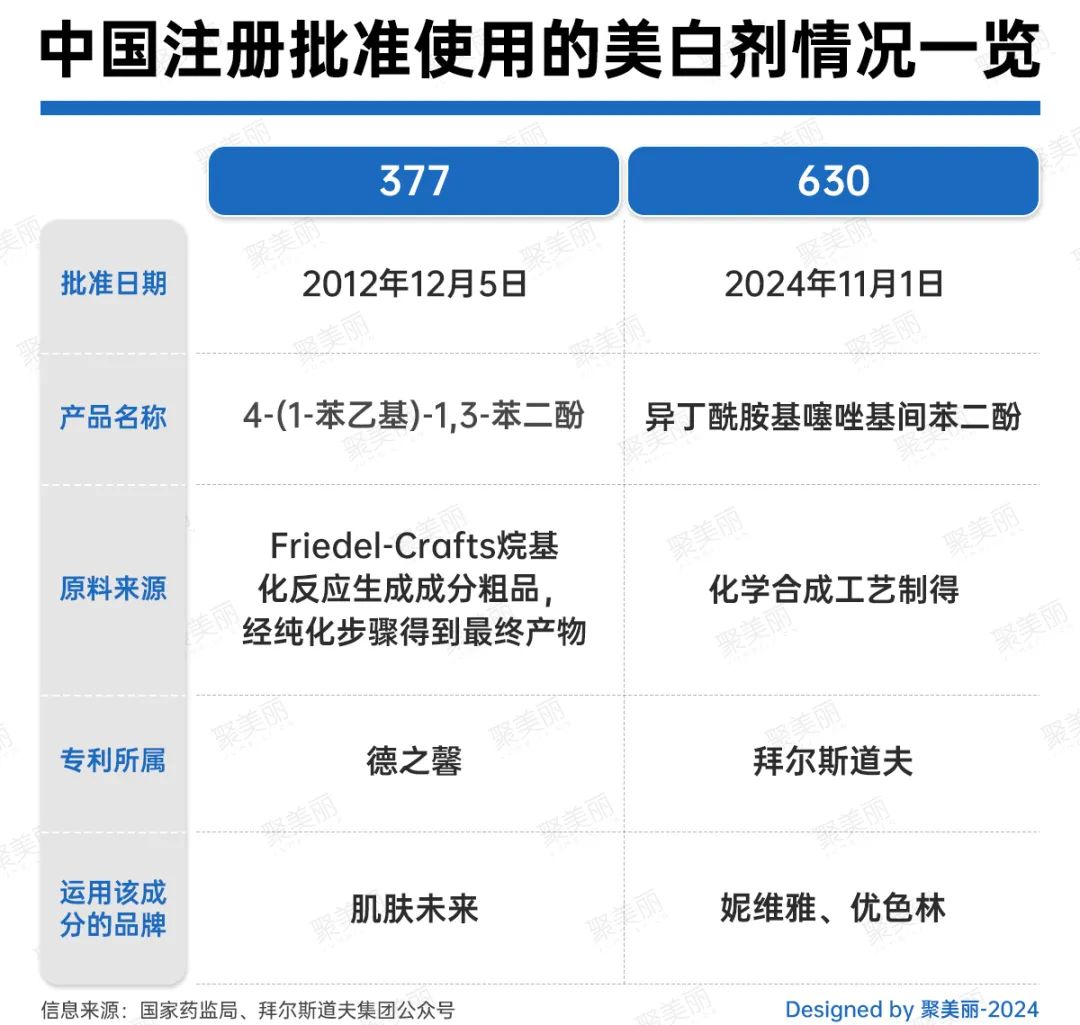 事实上,在630被批准注册之前,说起熟知的美白成分,大都会提及377这一成分。