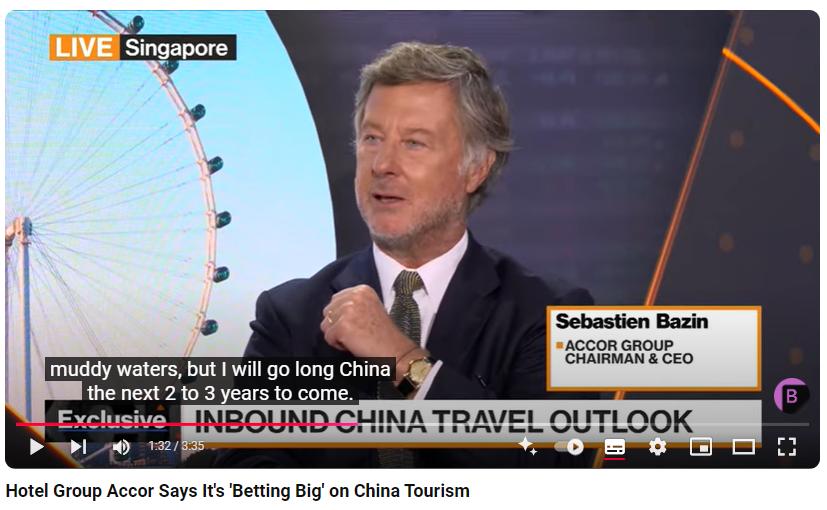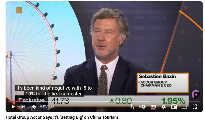 雅高集团CEO Sébastien Bazin说,大中华区的表现虽然不尽人意,但已经在逐季度改善。