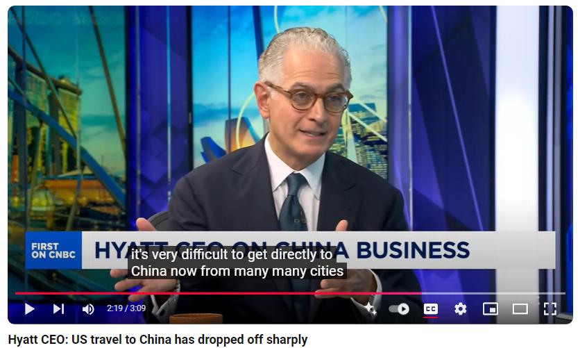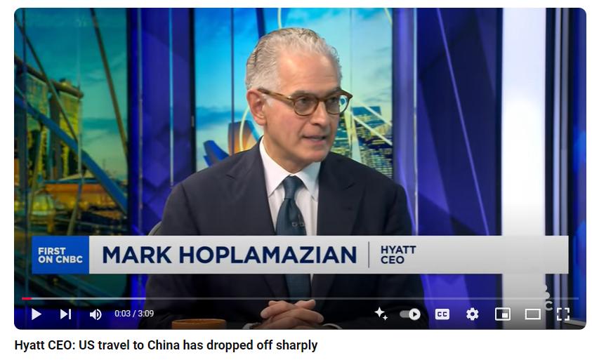 Hoplamazian提到,从2021年-2023年,中国市场业绩的主要驱动力是国内游客。但2024年,中国出境游人数显著增长,与前几年相比发生了巨大变化。