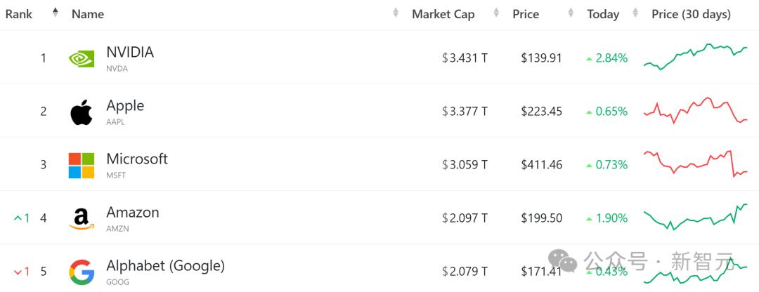英伟达3.4万亿市值稳坐全球第一,苹果12年霸主地位终结