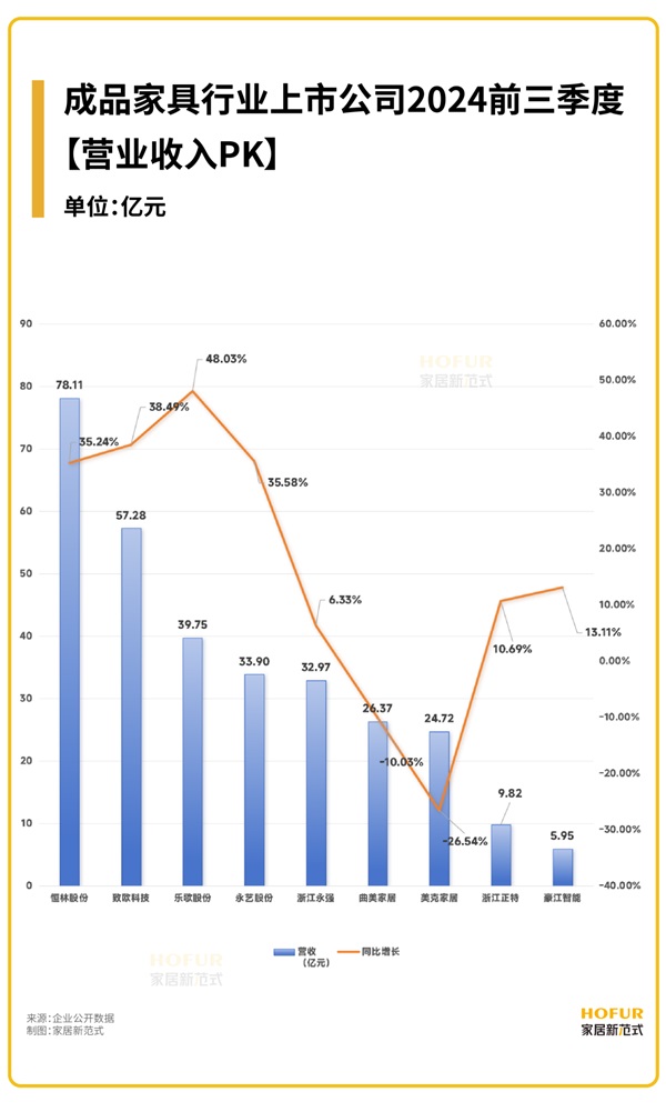 另外,乐歌股份、永艺股份、浙江永强均突破30亿元大关,浙江正特、豪江智能虽居末位,但均实现同比超10%的营收增长。