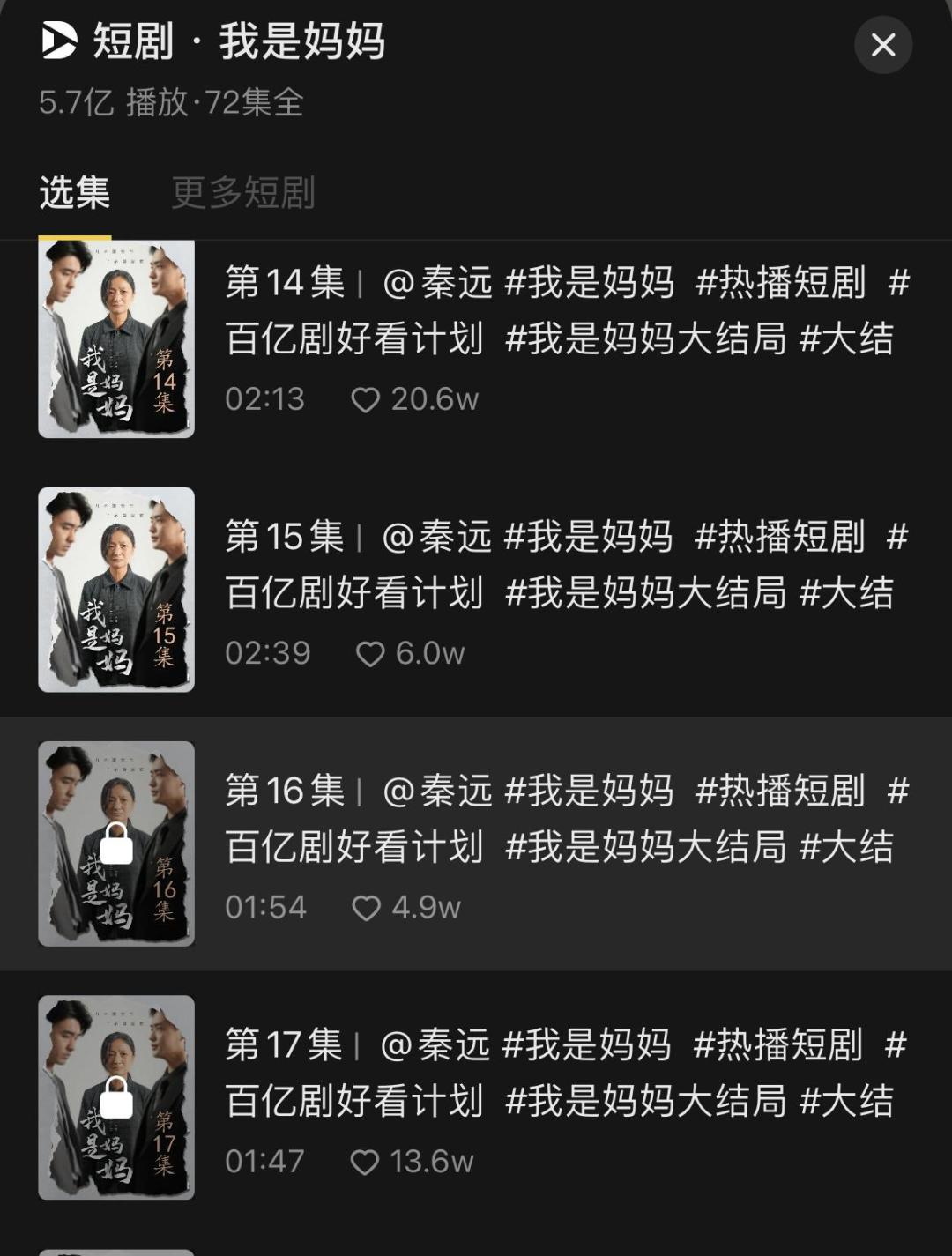 正如他所言,中老年短剧内容的付费点通常设置在十五、十六集的位置。