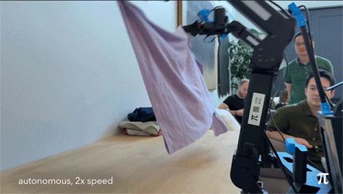 PI团队这里所说的机器人是任意品牌、任意形态的机器人,可以让这些机器人执行通用任务,也可以通过微调让这些机器人在专业场景执行专业任务。