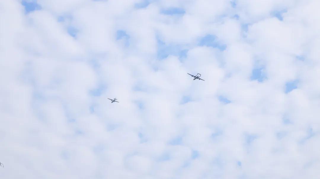 (图:腾盾科创的双尾蝎D和大型双发无人运输机进行飞行表演)