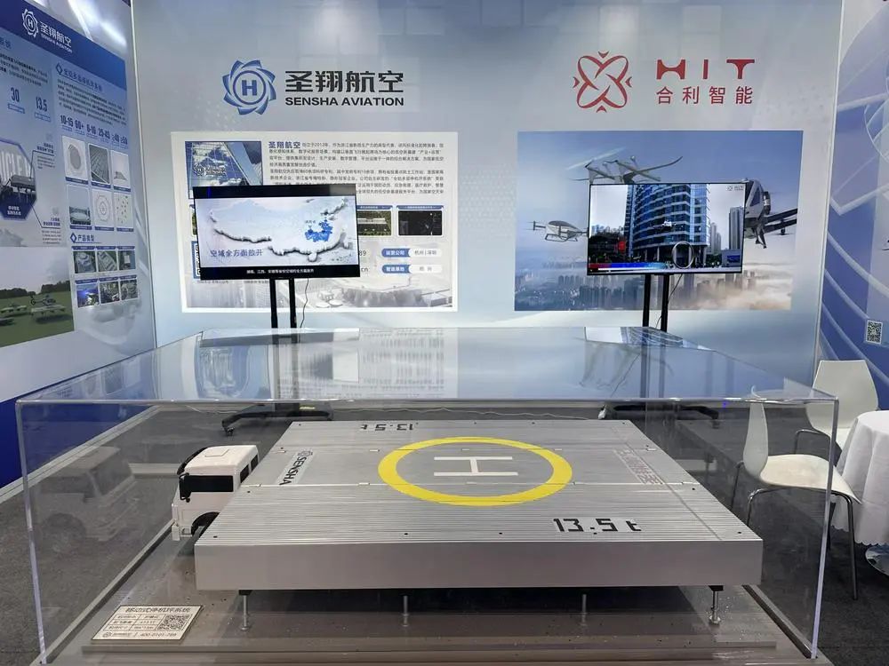 上述系统能根据eVTOL尺寸进行定制,安装也仅需要10-15天,包括自动升降护栏、自动弹出式消防系统、全坪实时数据监控等全自动系统。据该公司展台工作人员介绍,目前圣翔航空在全国范围内已有超400个起降点。