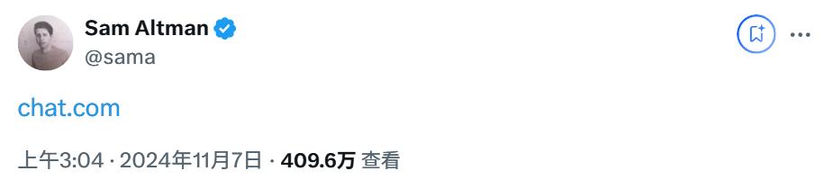 在互联网发展史上,域名交易一直是科技巨头布局的重要一环。今日凌晨,OpenAI 首席执行官 Sam Altman 一如既往地搞“深夜突袭”,在社交媒体平台 X 上发布了一条简短的推文:“chat.com”。随后用户发现,这个域名直接跳转到了 ChatGPT 官方网站。