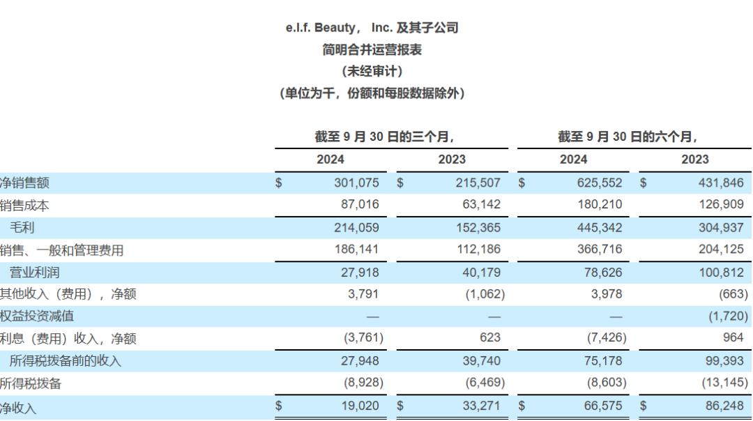 △图源:e.l.f. Beauty财报