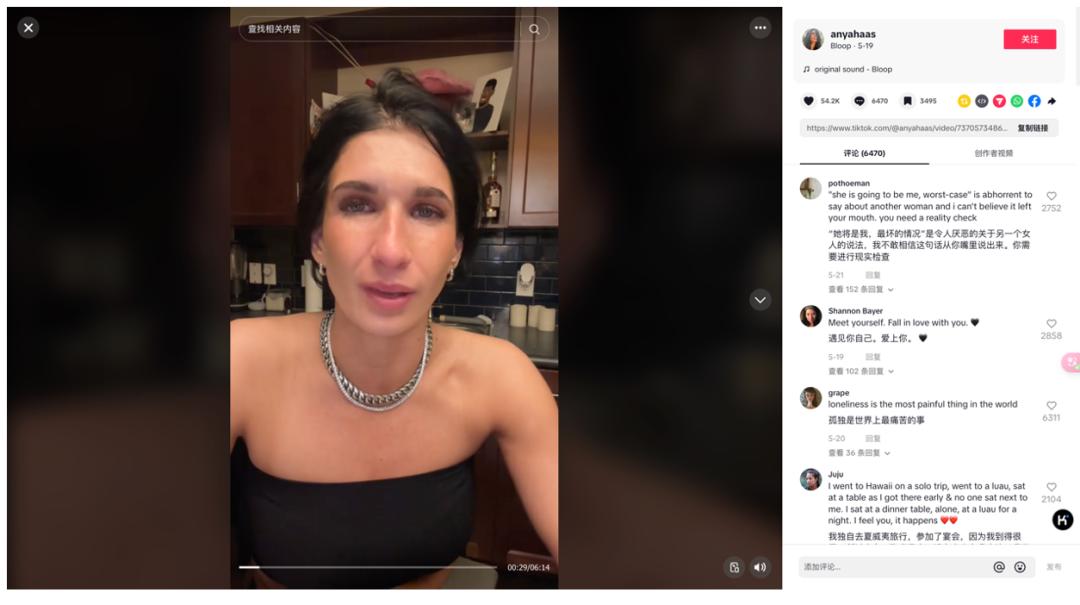 一位女性用户哭诉Dating App的糟糕体验,很多用户深有共鸣,这条视频在TikTok上获得了超过50万个点赞|图源:TikTok