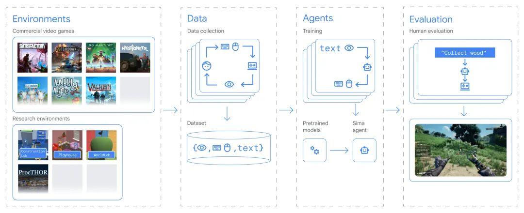 通过从不同的游戏世界中学习,SIMA捕捉了图像、语言与游戏玩法行为之间的联系。