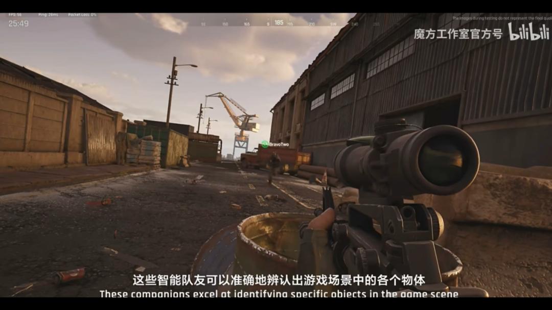 在具体战斗中,玩家还可以对AI队友还可以发处一系列连续的、复杂的指令,而AI队友在执行这些指令时,不仅能准确理解其含义,还能知道指令中提到的“沙袋”、“汽车”究竟在哪。