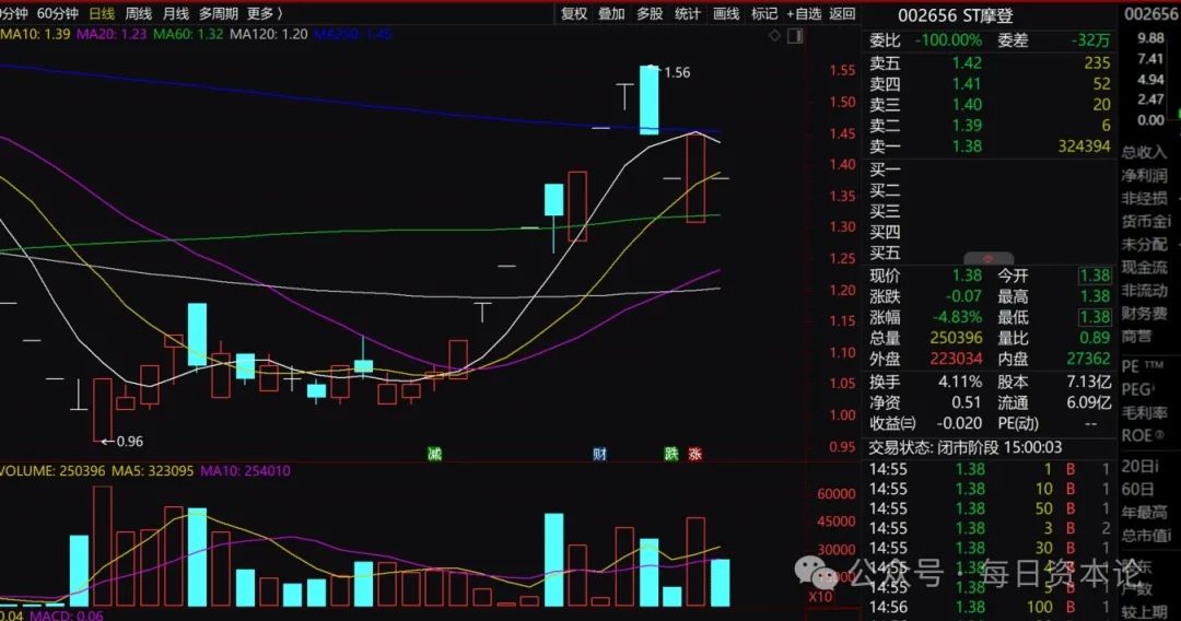 11月7日,尽管A股大涨,但ST摩登死死地被封在跌停板上。截至收盘,其股价为1.38元。那么,ST摩登还有希望吗?祈祷吧!