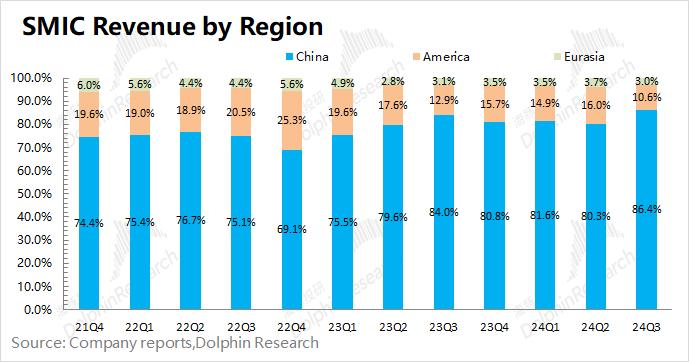 中芯国际重新调整了地区收入分布的口径,从原来的“北美洲/中国内地及香港/欧洲及亚洲”调整成了现在的“中国区/美国区/欧亚区”。由于口径的调整,数据上略有差异。