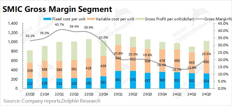 2)单片固定成本(折旧及摊销):本季单片固定成本(等效8寸)为324美元,环比下降9美元/片。