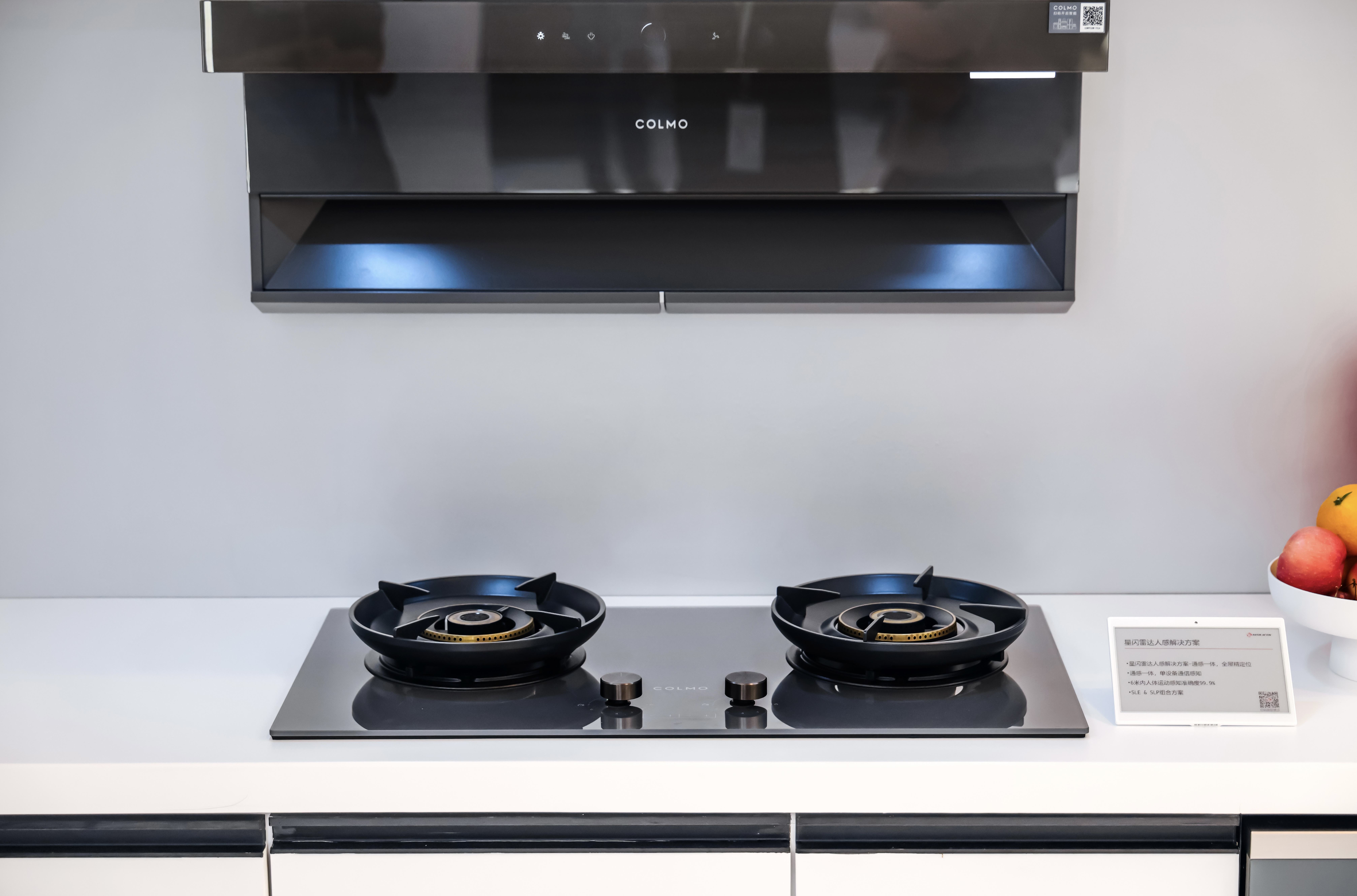 走进COLMO 厨电套系所占据的厨房,无需多想多做,星闪技术与AI科技深度融合,会让前所未有的轻松包裹着每一位用户。当用户信步来到灶具前,既是开关也是开启智慧烹饪入口的智能触屏,会根据你的需要检索到菜单,并提示对应菜肴的火候曲线,千般美味尽在掌握,让烹饪更显从容。“懂事的”烟机也会主动配合你的动作,搭载了上海海思星闪雷达感知方案的烟机可通过AI智能烟感技术,在灶具开启时就会以超低时延的效率自动响应,并以30m³/min的强劲功率快速吸排油烟,避免油烟中的有害物质侵害家人的健康;没有油烟升起后开启并调整烟机功率的手忙脚乱,让烹饪变的更从容专注。