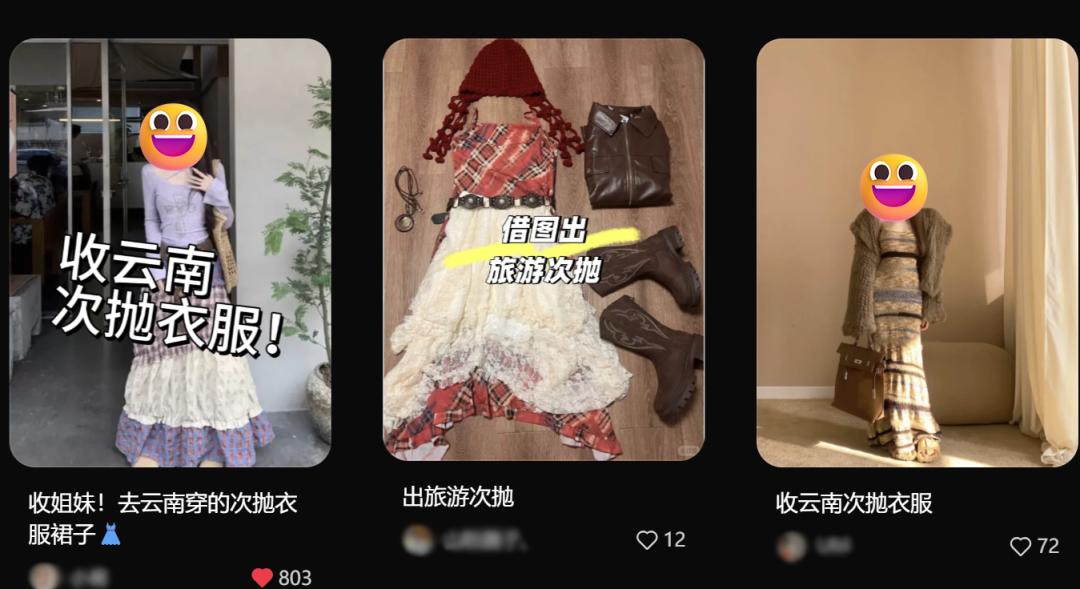 在去云南旅游前,路路就在闲鱼上随手下了两条好出片的裙子,一共花了五十块。一开始她没对实物抱有多高的期待,说白了是图个新鲜,想到那儿拍照换着穿。拿到次抛裙后,她发现它们和淘宝上卖的质量大差不差,简单说,就是都不咋地。