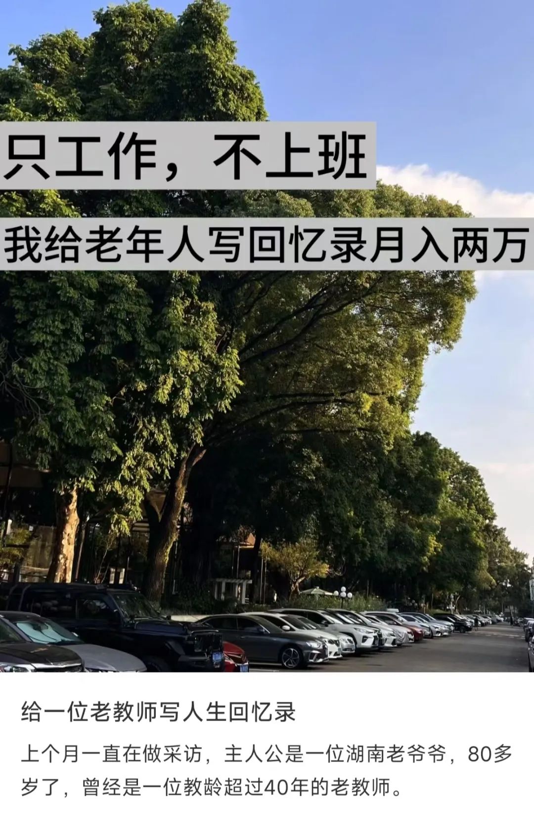“初中学历,帮老年人写回忆录,每本收入2万以上”
