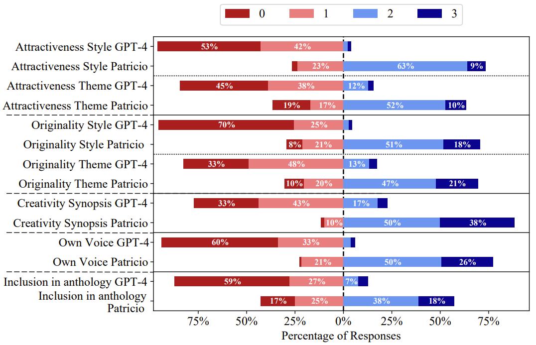 有研究团队专门测试了 GPT-4 Turbo(当时最强的 LLM ),让它跟一位出色的西班牙语作家比赛写故事。