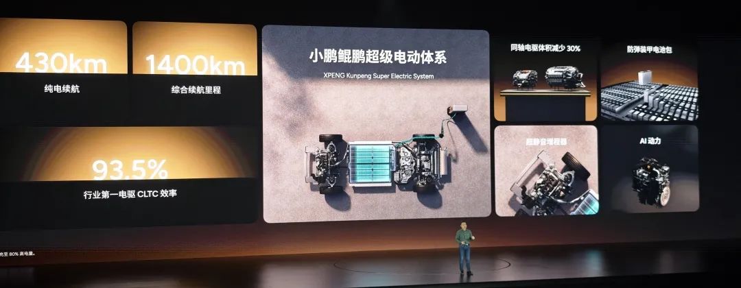 “小鹏鲲鹏超级电动体系,是用下一代电动技术满足用户更高需求的增程系统。”在发布会上,小鹏董事长何小鹏,尝试让这套增程系统多一些电动味、少一些汽油味,不仅IP名不包含“增程”二字,在产品定义上,也打出“430km纯电续航”作为核心卖点。
