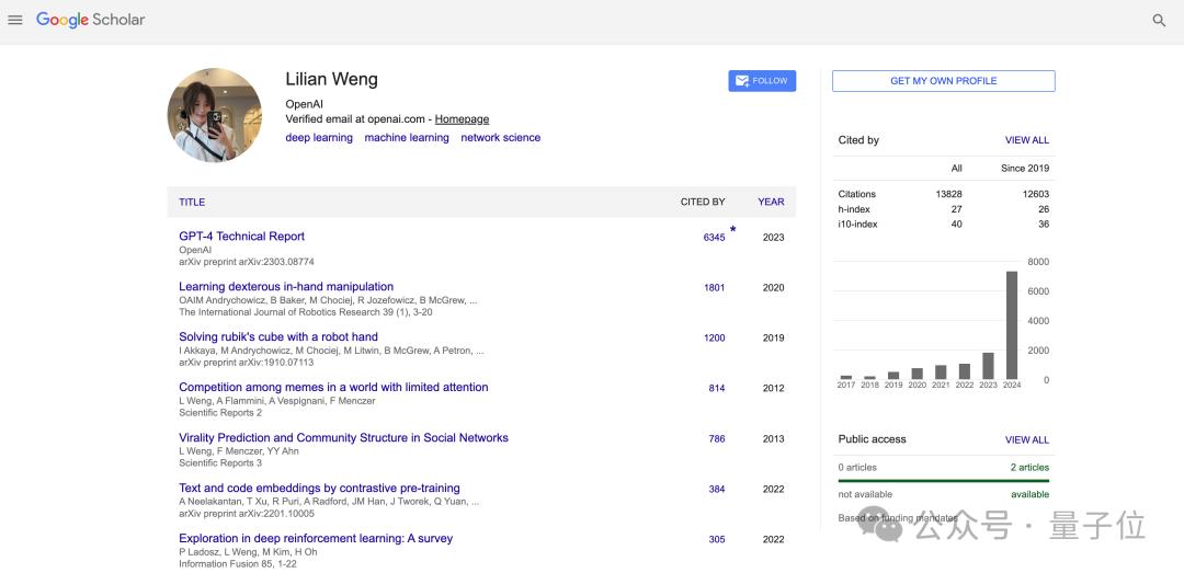 北大毕业后,翁荔在2018年加入OpenAI,后来在GPT-4项目中主要参与预训练、强化学习和对齐、模型安全等方面的工作。