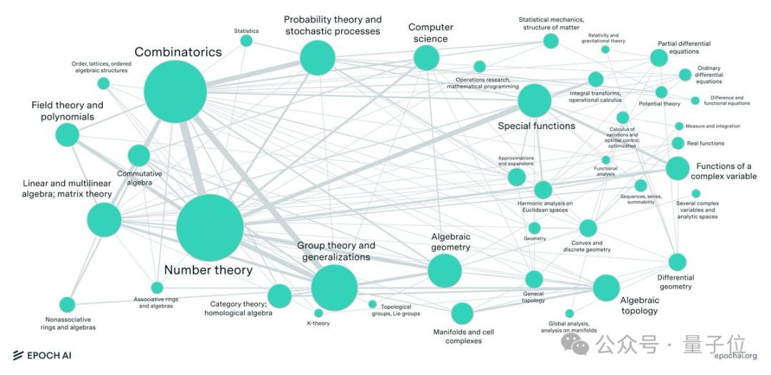 其中数论和组合学最多,合计约占所有MSC2020(数学学科分类系统2020版本)的34%。
