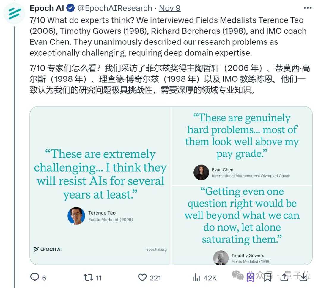 为了进一步验证FrontierMath的难度,该机构还特意采访了4位数学大佬。