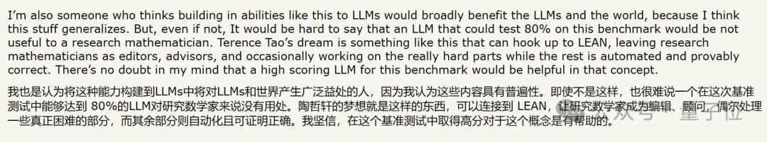 陶哲轩梦想的就是这样的东西,可以连接到LEAN(微软研究院推出的一款定理证明器),让数学家成为编辑、顾问,偶尔处理一些真正困难的部分,而其余部分则自动化且可证明正确。