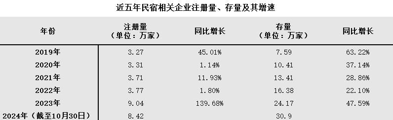 以民宿为例,企查查数据显示,截至今年10月底,国内民宿相关现存企业达30.9万家,相比2019年的7.59万家,增长了3倍。