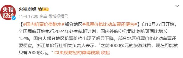 机票:数据显示,十一假期国内和出境机票价格同比下降超过20%,而国庆后的旅游淡季,国内机票价格更是普遍大幅度下降,不少地方的机票价格甚至远低于动车票。