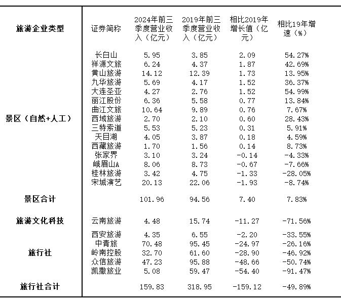 A股旅游景区上市公司(自然+人工),总体营收较2019年增长了7.83%。