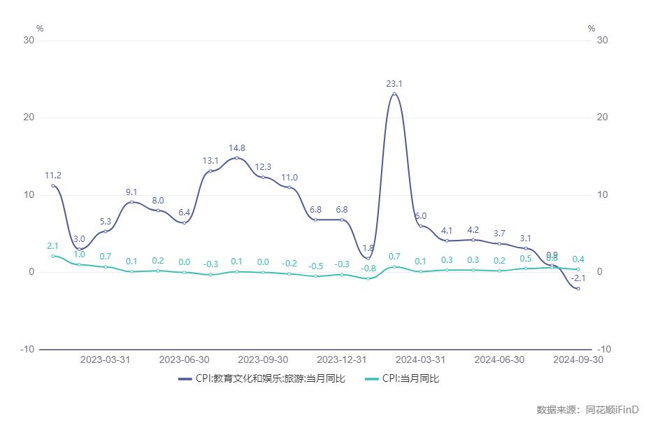 国家统计局数据显示,今年旅游CPI 在2月份创下峰值,同比上涨23.1%;到今年9月份首次转负,同比下降2.1%,首次低于综合CPI增幅。