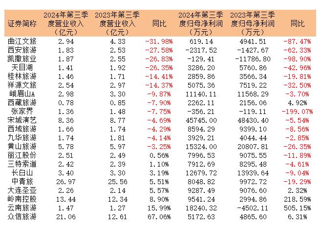 财报显示,今年三季度A股21家旅游上市公司,业绩都出现不同程度的下滑,营业收入下降的超过6成,利润下滑的将近8成。