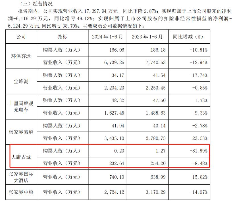 财报显示,大庸古城累计投资超22亿元。最近3年及2024年上半年,其累计亏损已超5亿元。