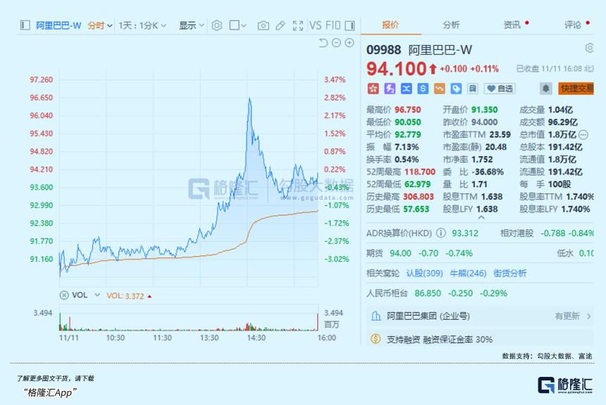 值得一提的是,今天港股盘中,市场突然传出小作文称蚂蚁上市获批并引发巨大关注,随后该小作文很快被股民辟谣,但阿里巴巴的股价还是出现了逆势迅猛大涨,从早盘跌3%一度拉升至涨3%。