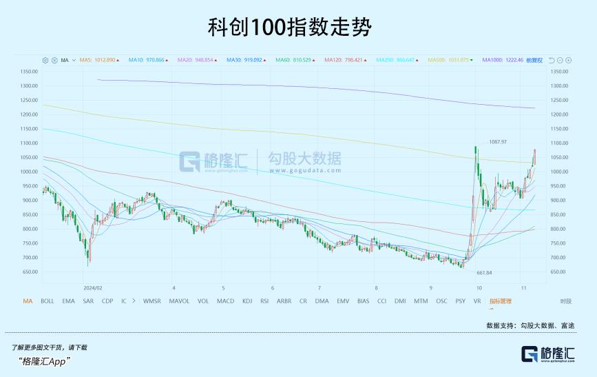 比创业板大涨更强的科创板,今天科创100指数大涨5.37%,强势回升到1076.4点,距离10月8日的最高点仅有1个点的差额。