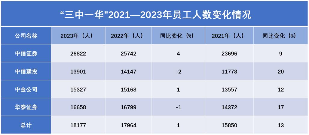根据财报,四大券商的人员正持续减少。