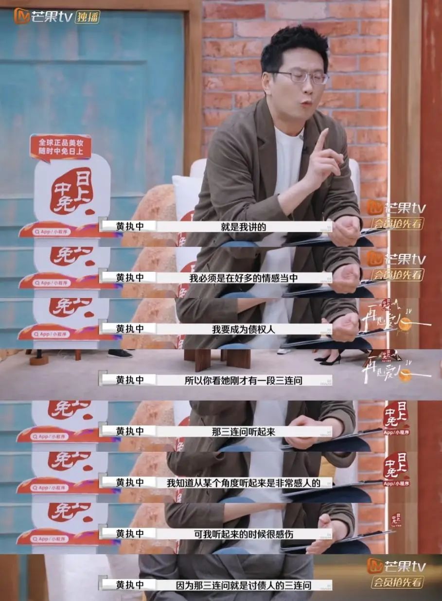 无论是黄执中“债权人”的概念类比,“配”这个字背后的语言艺术,还是Papi酱吐槽杨子“他真的是我最不喜欢的那种中年男性的类型”都在社交平台上得到广泛的二次传播,并引发新一轮的关于离婚夫妻,关于观察室嘉宾的争议。