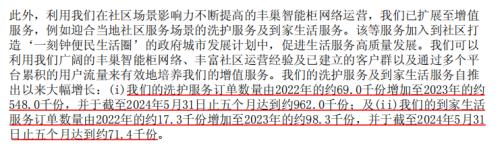 其次是洗护服务。洗护服务是丰巢拓展的新业务领域之一,数据显示,从2022年的约6900份订单增长至2023年的约5.48万份,而今年的订单数量已达到约9.62万份。