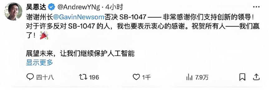 8月份,加州AI限制法案SB-1047(最终未通过)闹得沸沸扬扬。据传,其中有马斯克的手笔。