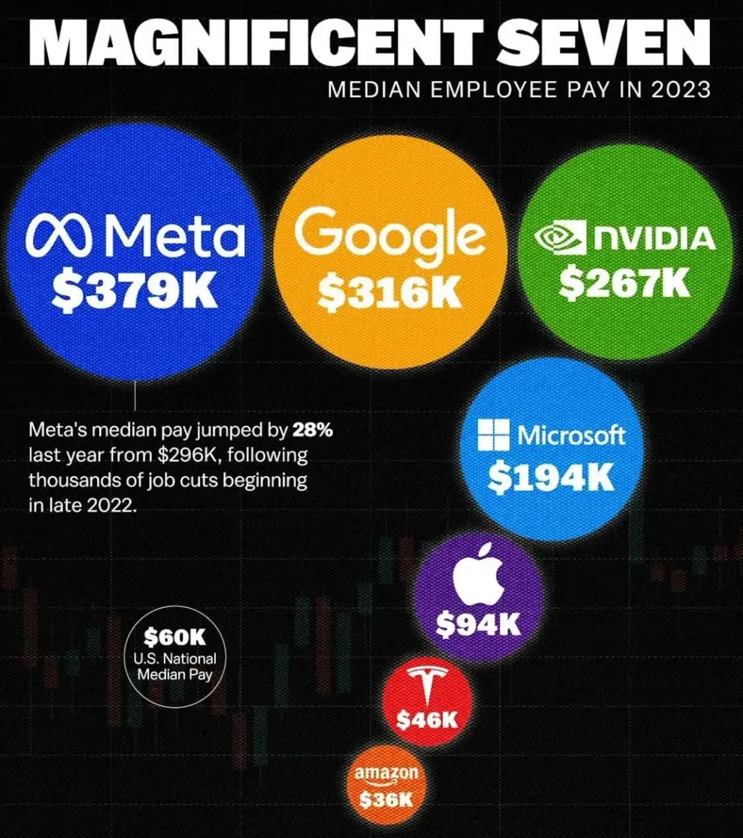 图|MyLogIQ统计的美国科技七巨头工资中位数