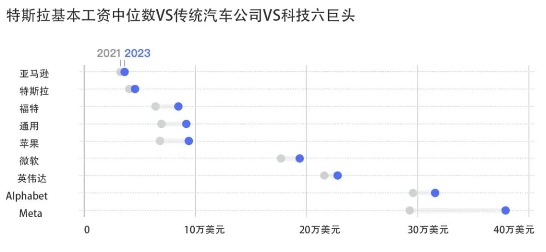 图|特斯拉基本工资中位数落后于其他公司