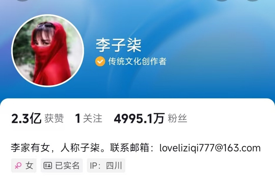 值得注意的是,据企查查信息显示,子柒文化的法人已经由李佳佳变更为李子柒,PConline发现,包括抖音、微博等平台的实名认证信息,也均显示为李子柒。