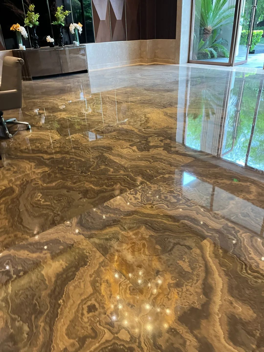 就连大堂地面铺装的都是价格高昂的“加拿大乱纹石”。